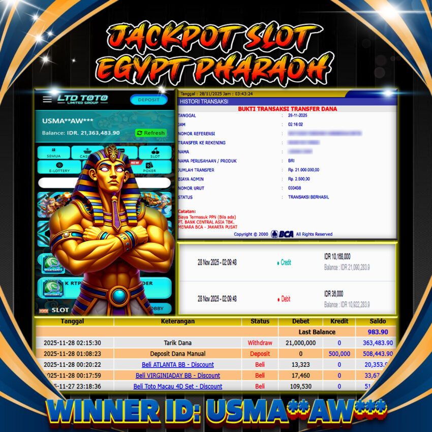 LTDTOTO JACKPOT EGYPT PHARAOH RP 21.000.000 JUM’AT 28 NOVEMBER 2025