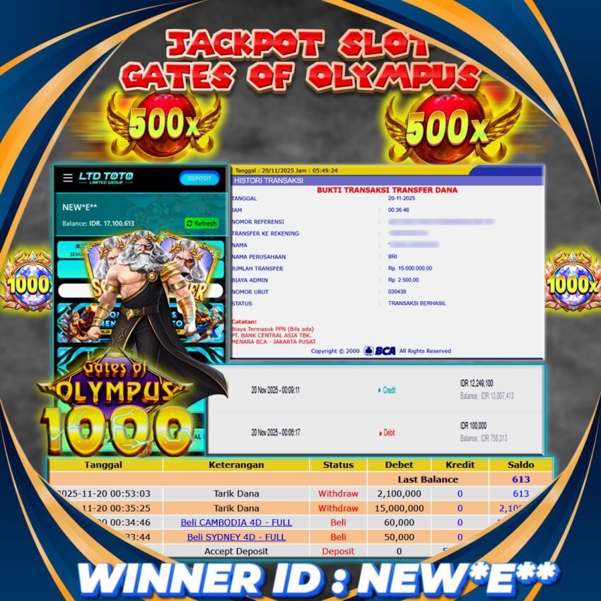 LTDTOTO JACKPOT GATES OF OLYMPUS RP 17.100.000 KAMIS 20 NOVEMBER 2025