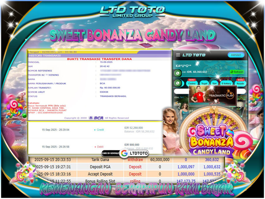 LTDTOTO JACKPOT LIVE CASINO SWEET BONANZA CANDYLAND RP 60.000.000 DI BAYAR LUNAS!