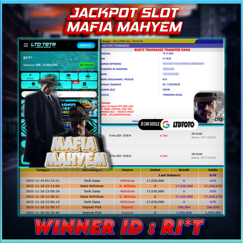 LTDTOTO JACKPOT MAFIA MAHYEM RP 17.030.000 RABU 19 NOVEMBER 2025