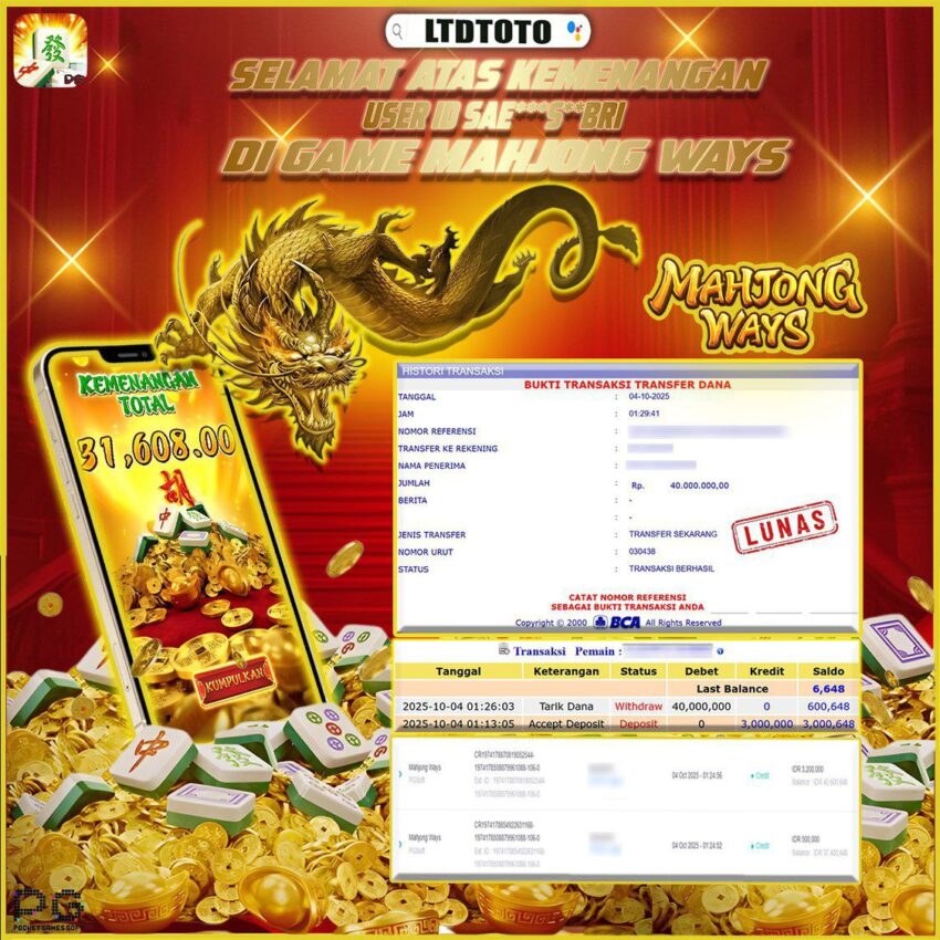 LTDTOTO JACKPOT MAHJONG WAYS RP 40.000.000 DI BAYAR LUNAS!