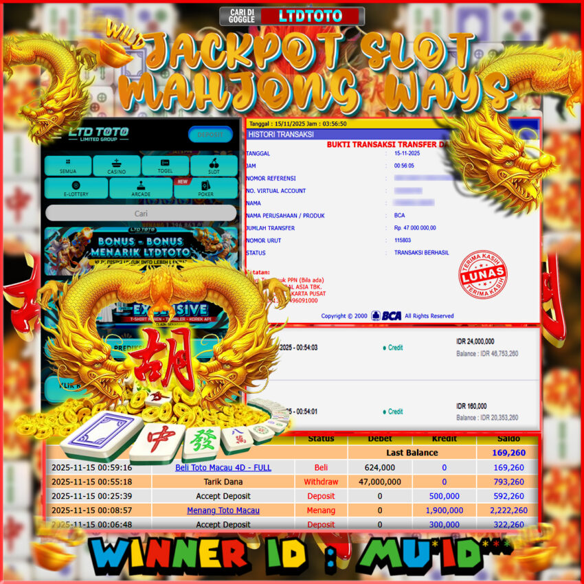 LTDTOTO JACKPOT MAHJONG WAYS RP 47.000.000 SABTU 15 NOVEMBER 2025