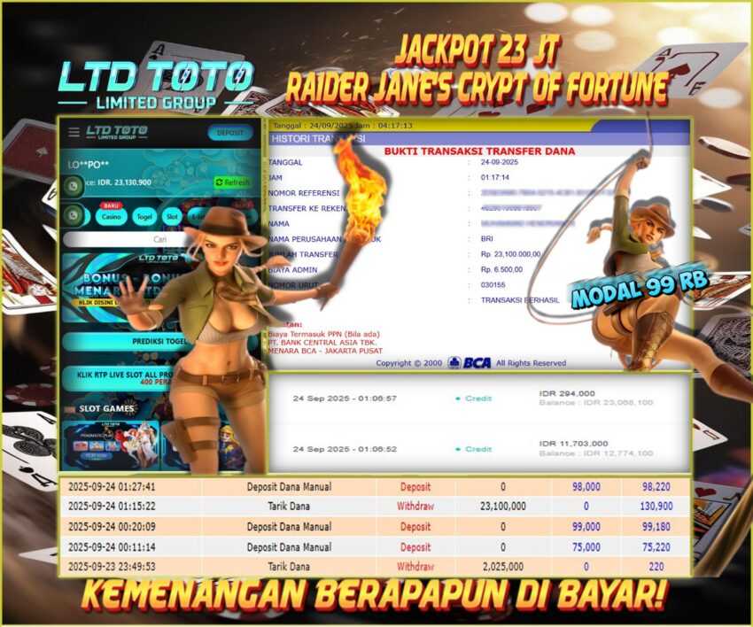 LTDTOTO JACKPOT SLOT RAIDER JANES CRYPT OF FORTUNE RP 23.000.000 RABU 24 SEPTEMBER 2025