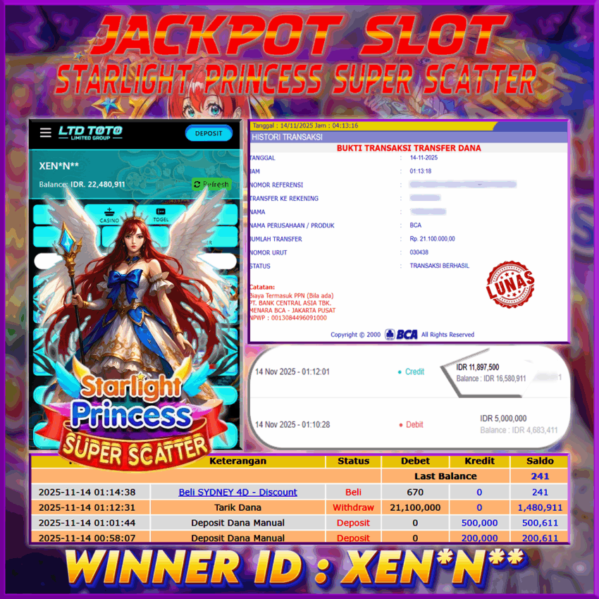 LTDTOTO JACKPOT STARLIGHT PRINCESS SUPER SCATTER RP 21.100.000 JUM’AT 14 NOVEMBER 2025