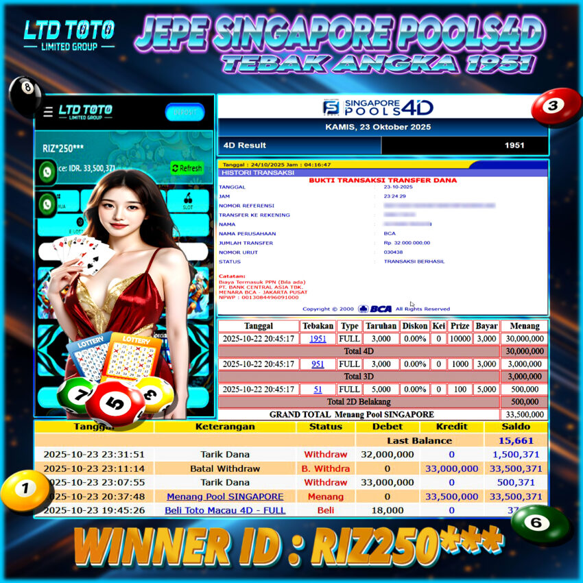 LTDTOTO JACKPOT SINGAPORE POOLS4D RP 32.000.000 JUM’AT 24 OKTOBER 2025